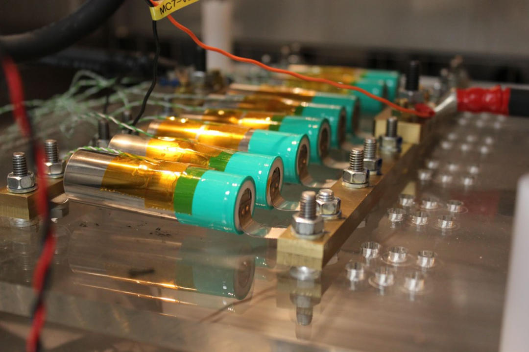 03 柱狀電池充放電測量 ▲ 8支并排的18650電池組用于測試
