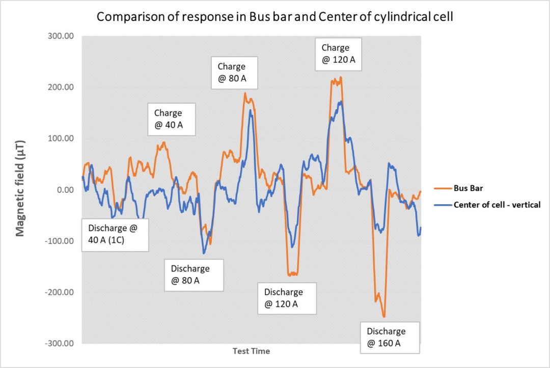 電池測試與監(jiān)控GHS優(yōu)勢 ??非接觸/隔離/非破壞電流傳感 ??測試無需斷電,對電池充放電循環(huán)無影響 ??傳感器可放置于任何載流件上,在BMS中集成更簡單 ??補充現(xiàn)有的測試方案,無需重新搭建電路或實驗裝置 ??無串擾,降低了屏蔽要求,可高密度集成獲得高空間分辨率 ??測量范圍寬(mA至10kA) ??傳感器不會過飽和,有更好的準確度 ??能測量>30T的磁場,且輸出無滯后 ??能捕捉大電流峰值,且不會損壞傳感器或影響校準 ??更快的發(fā)現(xiàn)問題,更換傳感器無需停機 ▲? (左)GHS探頭插入母線饋電電池組的支架上??(中)GHS探頭貼于軟包電池上測量電流密度分布圖??(右)GHS探頭貼于圓柱形電池上 ? 捕捉電流方向及電流大小 ??當電流流向反向時,輸出信號反向 ??測量和區(qū)分充電與放電 ??繪制通過電池的電流路徑 ??替代傳統(tǒng)的溫度測量方案 ??捕捉瞬時增加的電流密度,高分辨率數(shù)據(jù)測量 ??響應無延遲,比測量溫度反演電流密度/電阻率的方案更快