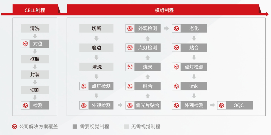 以LCD制程工藝為例具備從Cell到Module全視覺制程全檢測能力