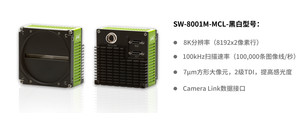 單色款:JAI Sweep家族“速度擔(dān)當(dāng)”,8192x2分辨率搭配100kHz超高速行頻,高速流水線的鋰電池涂布、隔膜、光伏檢測(cè)都能輕松hold住。