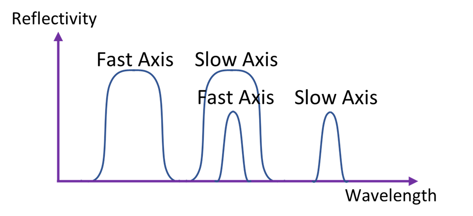 因此,寫入保偏光纖的FBG具有兩個反射峰,其波長分別對應于慢軸和快軸??燧S和慢軸峰值之間的波長差異取決于光纖雙折射,如圖2。