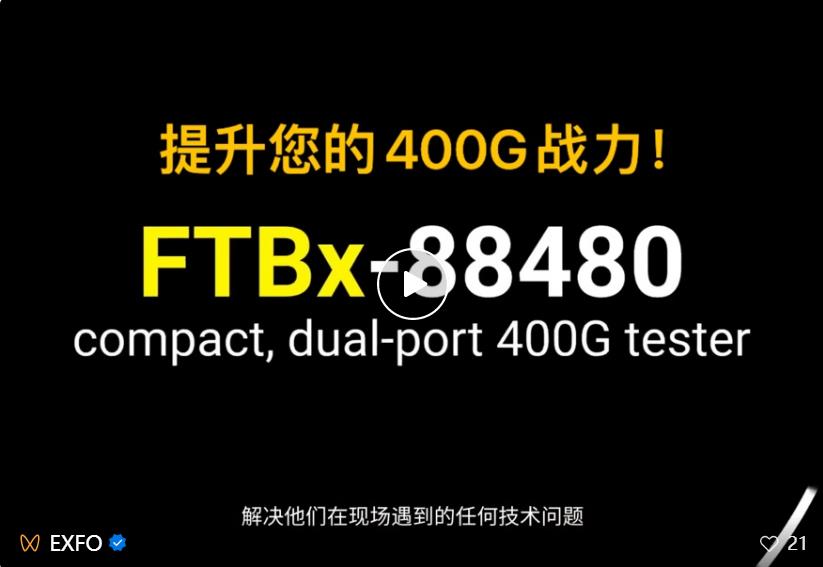 EXFO最新發(fā)布了緊湊的雙端口400G現(xiàn)場測試儀FTBx-88480,技術(shù)人員在測試中可以在不同速率(1G-400G)、接口和光模塊中順利而熟練地切換。FTBx-88480是一款模塊化平臺,可以幫助運(yùn)營商充分利用緊張的測試設(shè)備預(yù)算。