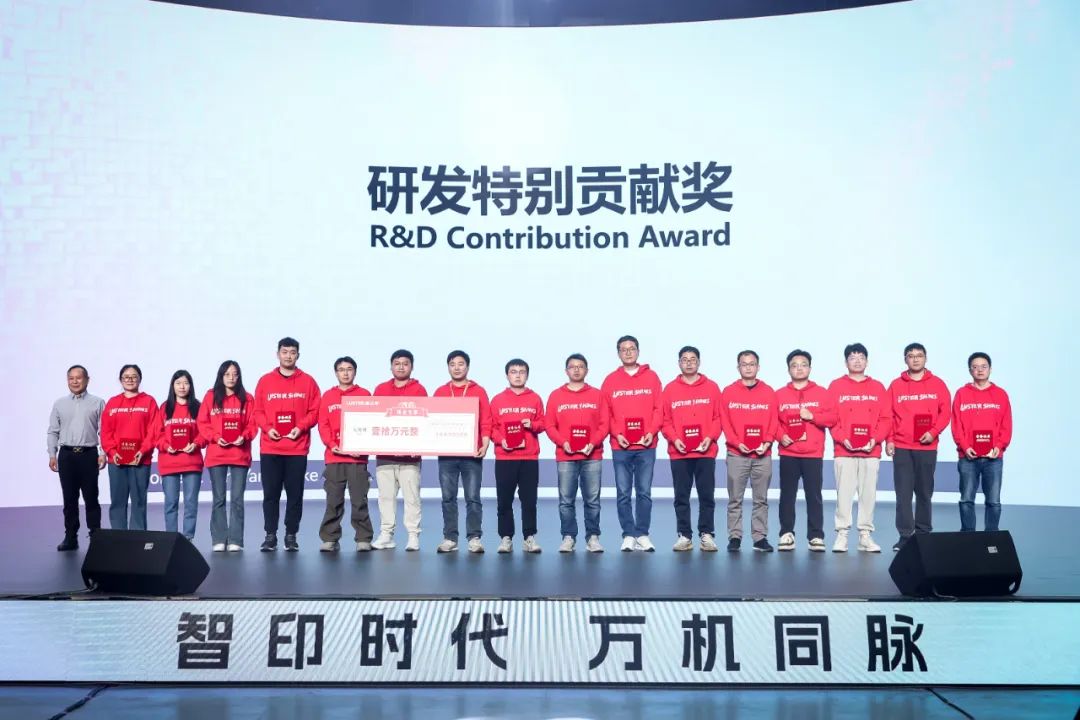 凌云光VP8研發(fā)團隊以創(chuàng)新突破技術邊界受到表彰,浙江彩之源新材料科技有限公司總經理楊衛(wèi)力為團隊頒獎,高度評價了凌云光的檢測系統(tǒng)在其生產管理和產品品質提升方面帶來的幫助,未來希望雙方加強合作攜手建立自己的品質控制中心。