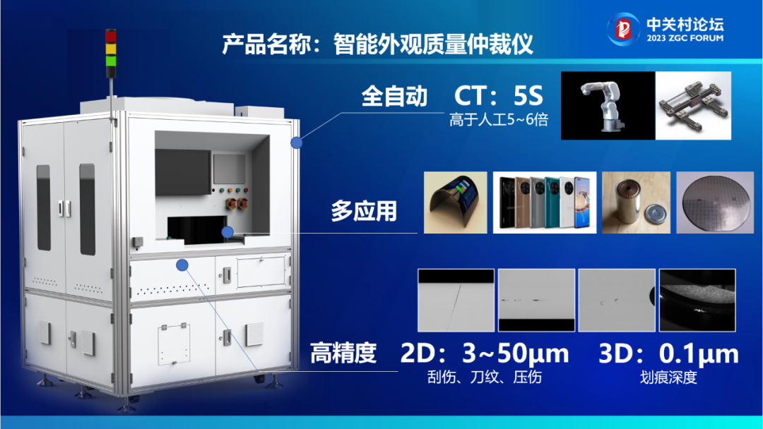 在本次論壇上,凌云光CTO趙嚴(yán)博士發(fā)表了題為《面向精密制造的高精度外觀檢測(cè)系統(tǒng)與方案》的主題演講,向與會(huì)者分享了視覺(jué)+AI技術(shù)在精密制造行業(yè)應(yīng)用的成功經(jīng)驗(yàn),并發(fā)布了可在3C電子、新型顯示、鋰電池以及半導(dǎo)體晶圓等多個(gè)行業(yè)應(yīng)用的智能外觀質(zhì)量仲裁儀。
