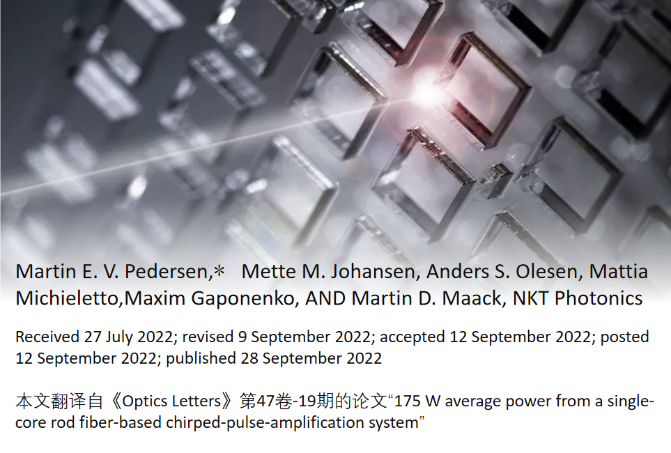 摘要:本文報(bào)道了一種基于光纖的啁啾脈沖放大激光系統(tǒng),該系統(tǒng)利用塊狀投射光柵壓縮脈寬到357fs,平均功率為175W,脈沖能量為233μJ,被壓縮脈沖序列光束質(zhì)量1.21。該功率放大器基于最先進(jìn)的單模光子晶體棒型摻鐿光纖,實(shí)現(xiàn)平均功率248W,重復(fù)頻率750k...