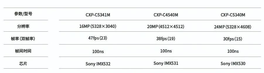 IMPERX三款CXP相機參數(shù)表
