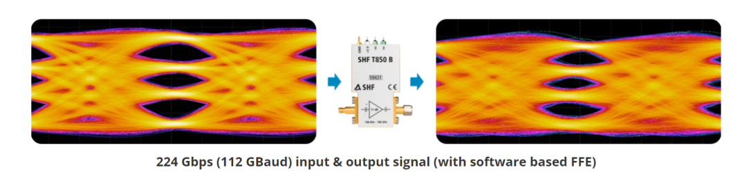 SHF T850B可支持最高112GBaud PAM4信號(hào)的放大,其實(shí)測效果圖如下: