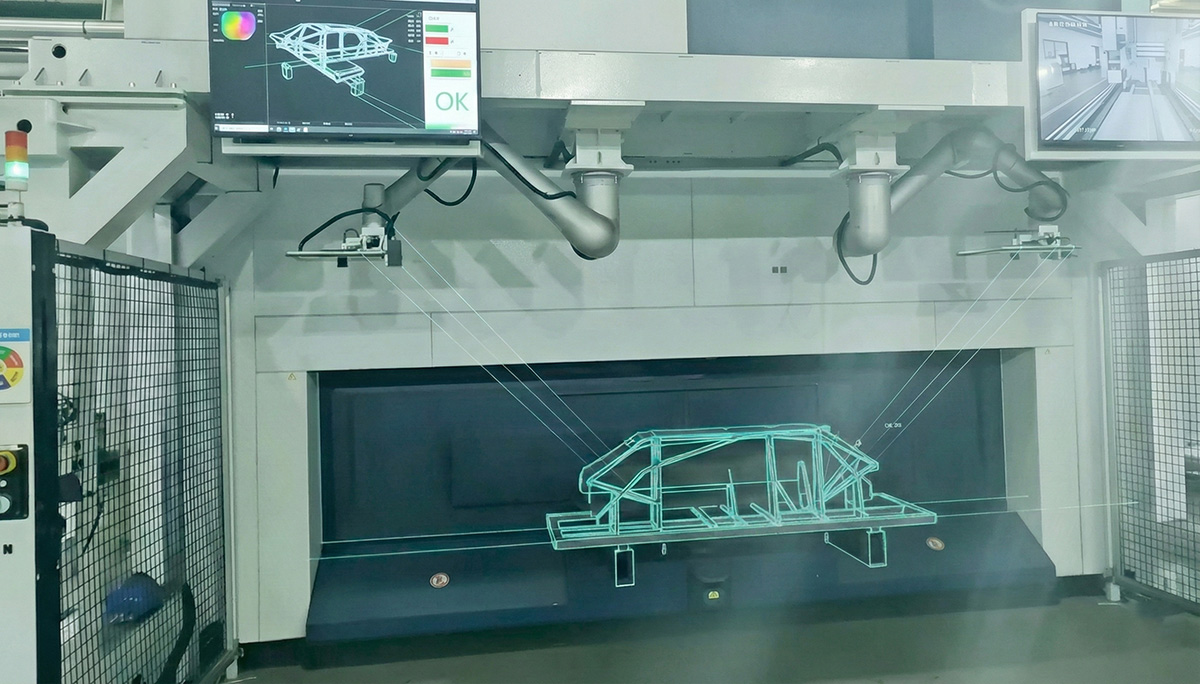 高溫成型鋼板經(jīng)激光切割后形成的B柱,需在節(jié)拍內(nèi)完成數(shù)十個(gè)孔位及輪廓邊線的全尺寸檢測(cè)(孔徑±0.1mm、孔位±0.2mm、邊線±0.7mm),該工序直接影響后續(xù)焊裝與整車總成裝配精度。
