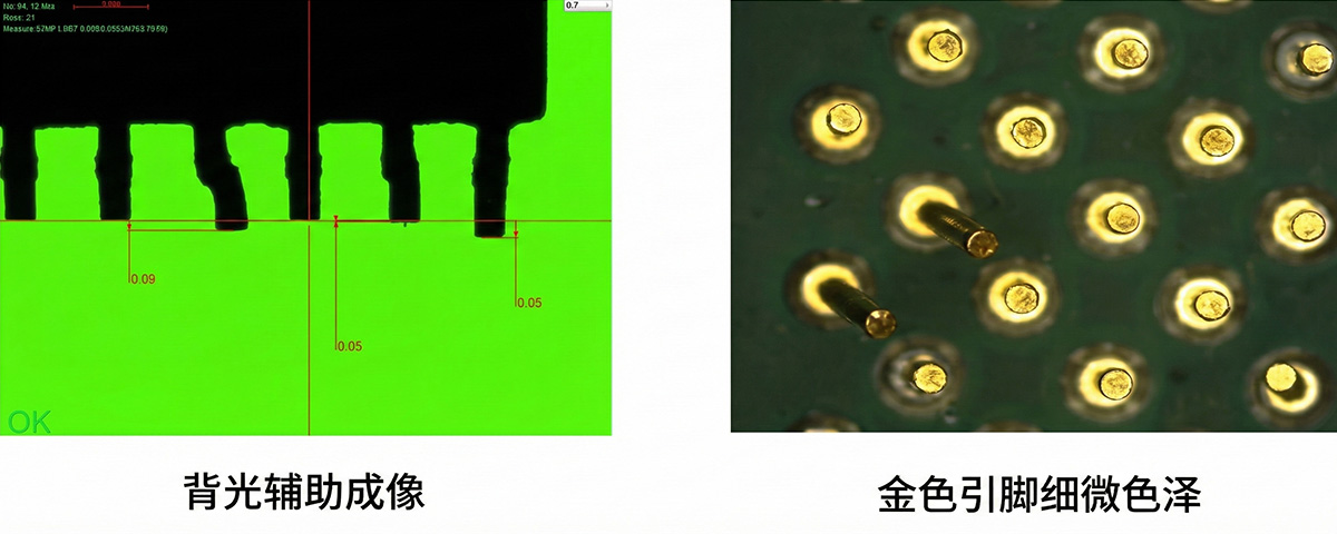 這意味著,無論是PIN引腳的細(xì)微色澤、塑封體的紋理,還是焊錫的光澤,都能被真實(shí)、一致地捕捉,為后續(xù)測(cè)量提供穩(wěn)定圖像輸入。