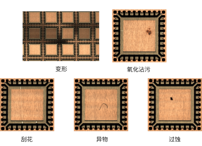 通過(guò)實(shí)施此套以JAI Sweep相機(jī)為核心的完整視覺(jué)方案,成功解決了半導(dǎo)體引線框架在高精度、高效率檢測(cè)中的技術(shù)難題,為客戶帶來(lái)了質(zhì)量與效率的雙重提升。該相機(jī)亦可用于裸晶圓上微裂紋、劃痕等缺陷的檢測(cè),圖案化晶圓上的圖案缺陷和光掩模對(duì)準(zhǔn)情況的檢測(cè),以及在半導(dǎo)體封裝內(nèi)安裝的芯片電路的質(zhì)量和缺陷檢測(cè)。
