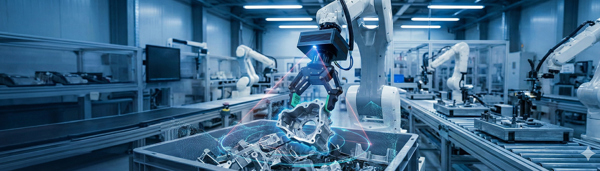 在汽車制造、工程機(jī)械等行業(yè)持續(xù)走向“小批量、多品種”的柔性化生產(chǎn)趨勢下,產(chǎn)線對自動化程度與靈活性的要求顯著提升,自動上下料等關(guān)鍵環(huán)節(jié)對視覺識別能力、路徑規(guī)劃算法和快速換型能力提出更高要求。3D視覺無序抓取通過精確識別工件位姿,實(shí)現(xiàn)自動上下料作業(yè),大幅提升生產(chǎn)效率,有效減少人員損傷、操作失誤和安全風(fēng)險,是柔性制造升級的關(guān)鍵技術(shù)之一。然而在實(shí)際落地中,面臨多重挑戰(zhàn)。
